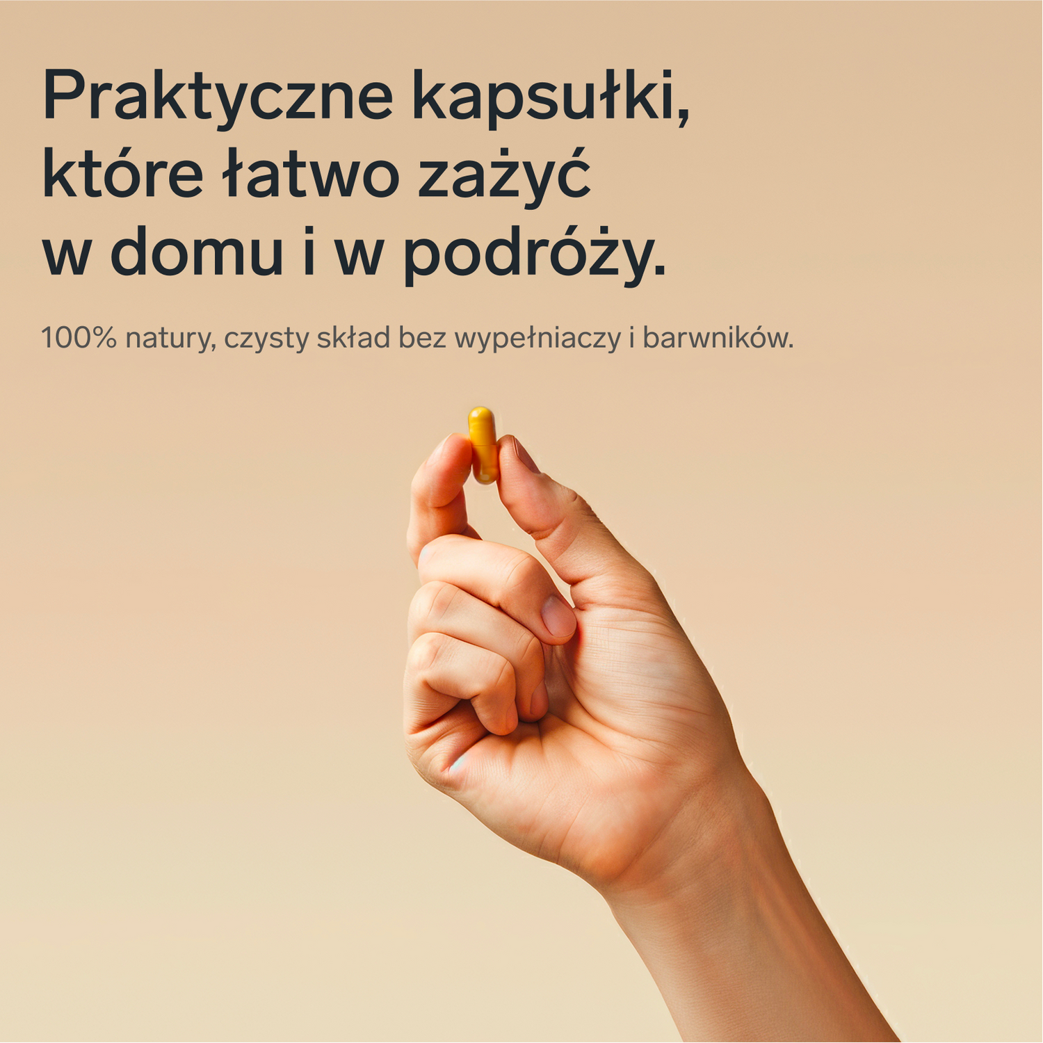 - Praktyczne kapsułki, które łatwo zażyć w domu i w podróży